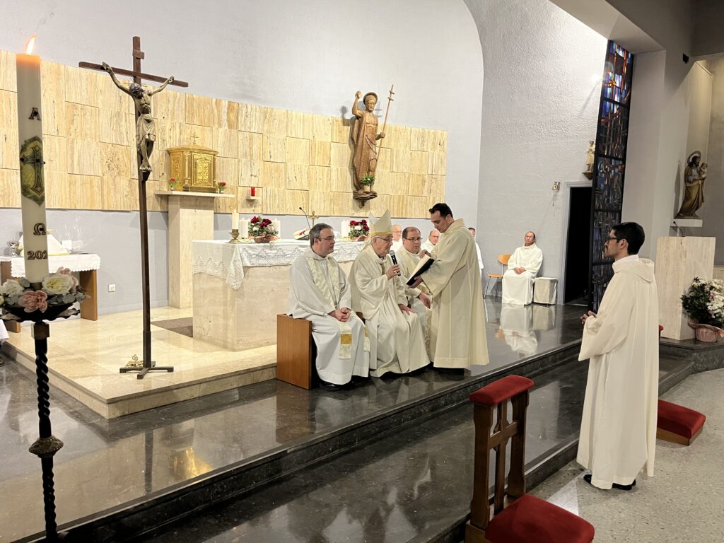 Viernes 17 abril noche en la Parroquia San Juan Bautista Mirasol (Sant Cugat del Vallès) el obispo Salvador confirió la Admisión a las Órdenes al sr. Mauricio Valbuena Parra, candidato que se prepara para recibir el diaconado permanente. Estuvo acompañado por los curas de la parroquia y otros candidatos al diaconado. En la homilía el sr. Obispo reflexionó sobre la vocación universal a la santidad, la particular del matrimonio y come ésta el servicio diaconal.