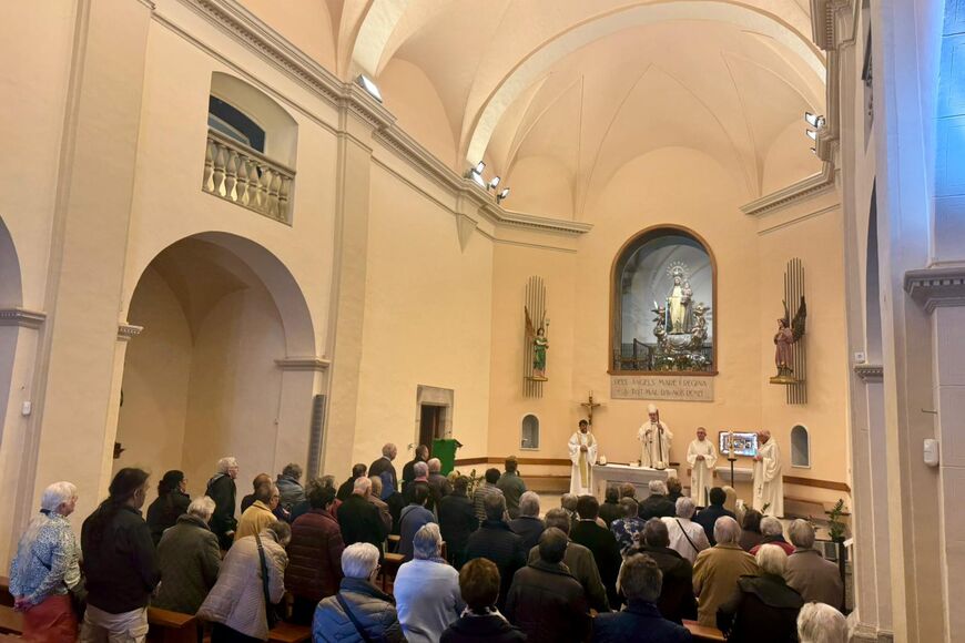 Un cop acabada l’Eucaristia, la delegada diocesana de Vida Consagrada, Pilar Pina, va adreçar unes paraules als assistents, animant-los a mantenir viu el compromís de contribuir al camí sinodal de l’Església, fent-la propera i compromesa amb la gent d’avui. A continuació, es va presentar un resum de les aportacions de la Vida Consagrada gironina a la segona fase diocesana del Sínode de la Sinodalitat, juntament amb dos testimonis que van mostrar com aquest camí sinodal es va fent realitat al nostre bisbat.