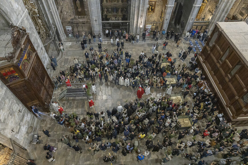 Ahir diumenge, 29 de març, els temples de la diòcesi es van omplir per viure, un any més, la tradicional benedicció de Rams, pòrtic de la Setmana Santa. En aquesta ocasió, en molts indrets es va haver de celebrar a l’interior, a causa del vent, com és el cas de la catedral de Girona. La benedicció i la missa posterior van ser presidides pel bisbe, fra Octavi Vilà i van comptar amb la participació d’unes 400 assistents. El bisbe va centrar la seva homilia en la passió de Crist com a fonament de l’esperança cristiana. En aquest sentit, va citar sant Agustí afirmant que «la passió de nostre Senyor Jesucrist és l’origen de la nostra esperança», tot reconeixent que pot semblar contradictori que la mort sigui signe d’esperança, ja que sovint és percebuda com una derrota.