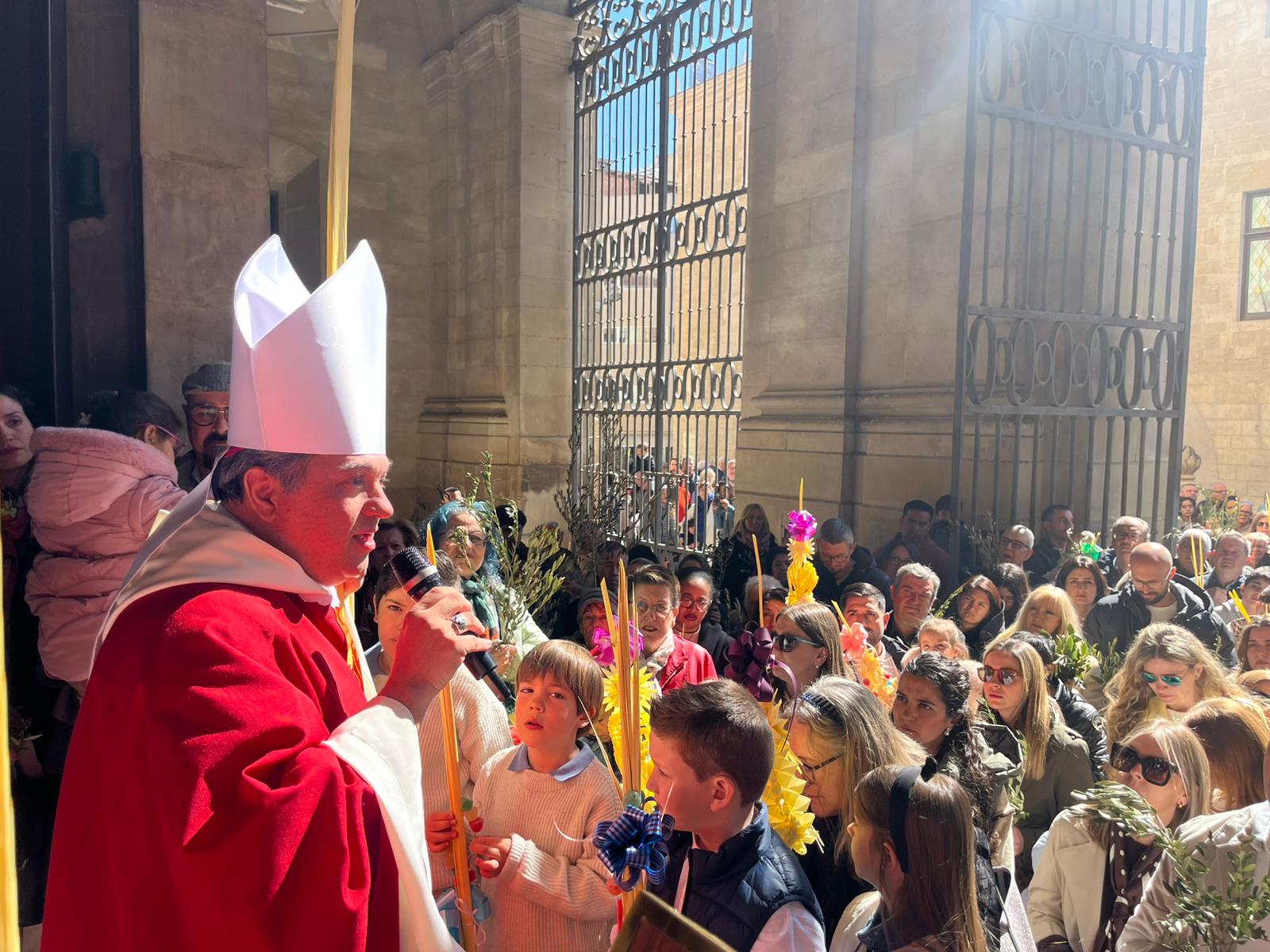Un dels moments més destacats va ser la benedicció de les palmes, en què el bisbe va convidar els nens i nenes a apropar-se, fent-los protagonistes d’aquest inici de la Setmana Santa. La celebració va continuar amb un ambient viu i participatiu, i els infants també van tenir un paper especial en el moment de la consagració, quan van ser convidats a pujar a l’altar.