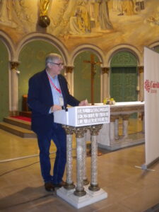 Tot seguit, prengué la paraula Salvador Busquets, president de Càritas Catalunya, que destacà el lema d’enguany que marcava la trobada, “Acompanyem des de l’Esperança”, que posteriorment desenvoluparia la ponent; també el fet que – des d’aquesta edició – sempre hi haurà un taller sobre la Doctrina Social de l’Església.